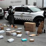 Santa Catarina, N. L., — Elementos de la Guardia Nacional, con el apoyo de un binomio canino, aseguraron aproximadamente 32 paquetes que contenían presunto narcótico al interior de una empresa de mensajería ubicada en el municipio de Santa Catarina.