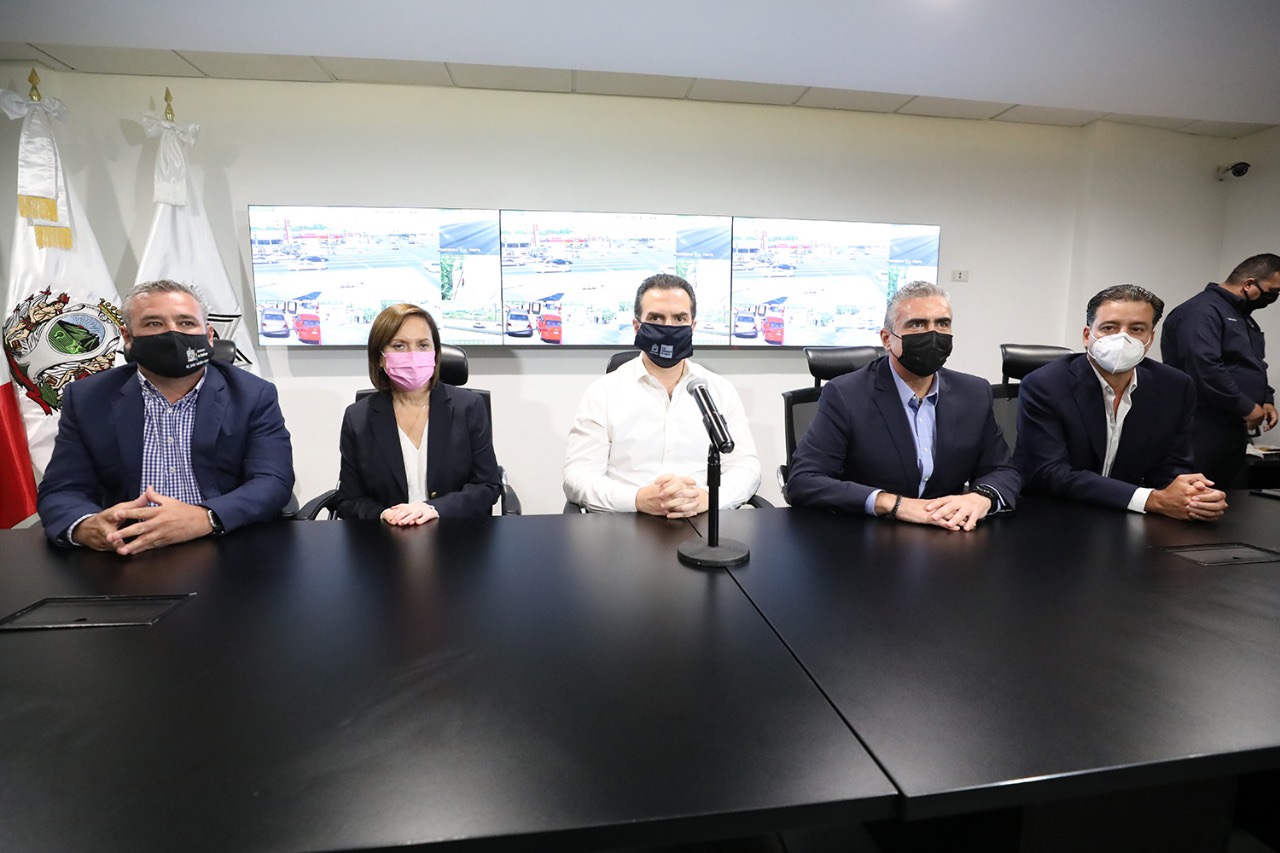 El Alcalde regiomontano, Adrián de la Garza Santos recibió a sus homólogos del municipio de Apodaca, César Garza; de Guadalupe, Cristina Díaz; de Juárez, Everardo Benavides y de Santiago, Javier Caballero; para mostrar el funcionamiento de su modelo de seguridad.