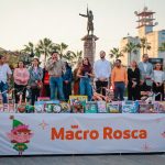 Acompañado también por su Gabinete, el Mandatario estatal partió el primer pedazo de la Macro Rosca, que tuvo una longitud de 450 metros lineales, la cual fue distribuida por la Macroplaza.