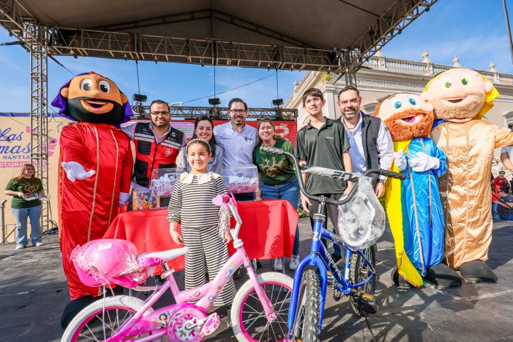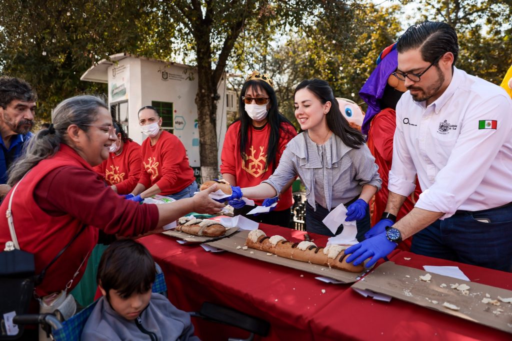 Entre risas, música y un ambiente de convivencia familiar, el Presidente Municipal de Santiago, David de la Peña Marroquín, junto a su esposa Olga Amalia Villalón Toba, Presidenta del DIF y sus hijos David, Pablo y Maya, encabezaron la celebración del Día de Reyes, en la que cientos de familias santiaguenses disfrutaron de la tradicional Mega Rosca, de más de 200 metros de largo que rodeaba toda la Plaza Ocampo, acompañada de espectáculos y sorpresas para chicos y grandes.