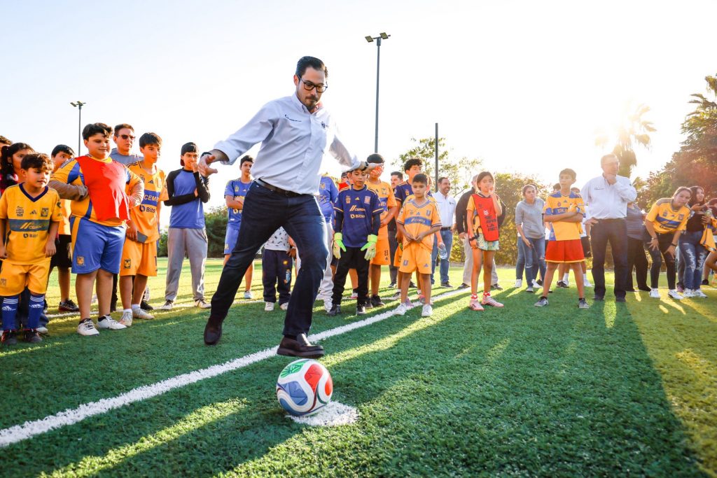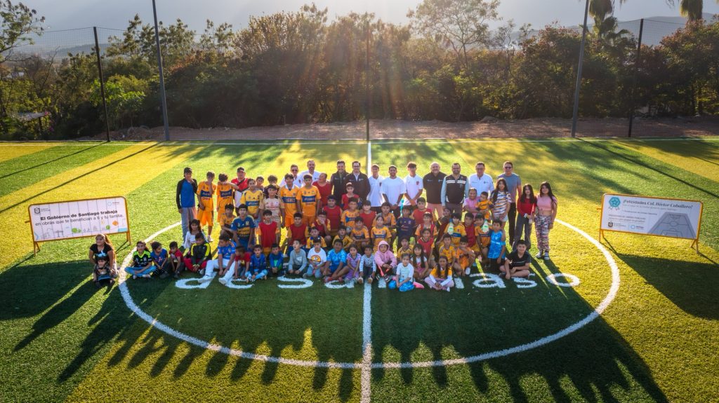 Con el objetivo de fortalecer los espacios públicos y fomentar el deporte entre niñas, niños y jóvenes, el Presidente Municipal de Santiago, David de la Peña Marroquín, acompañado del jugador profesional de Tigres, Javier Aquino, inauguró la nueva cancha de Fútbol 7 en la colonia Héctor Caballero.