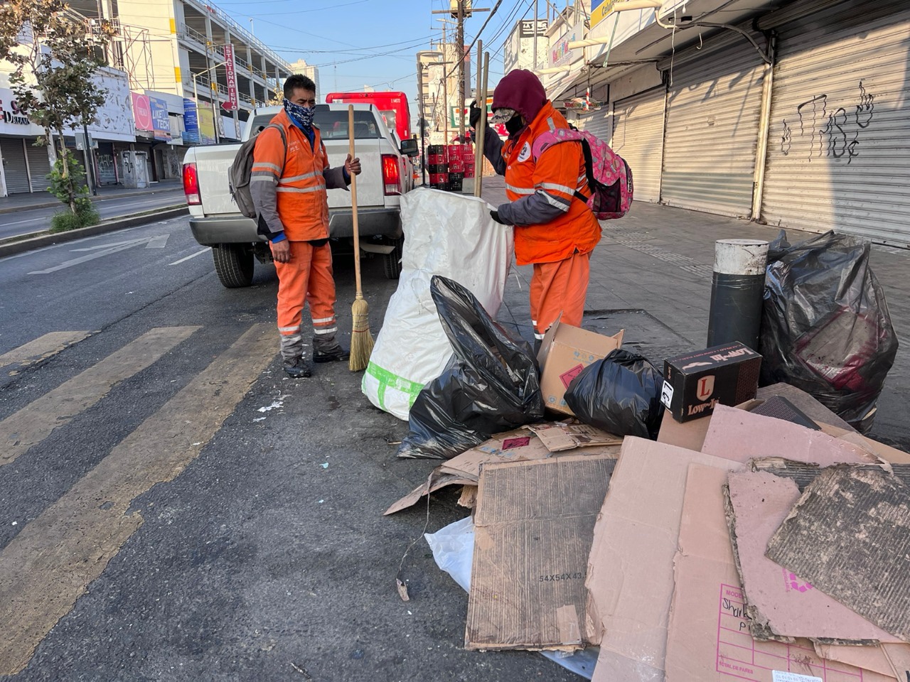 Ante el aumento de personas que acuden a realizar las compras navideñas, el municipio de Monterrey duplicó las labores de limpieza el centro de la ciudad.