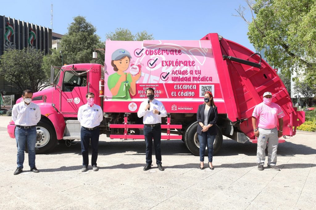Un camión recolector de basura de la empresa Red Ambiental, llevará mensaje de prevención y detección oportuna del cáncer de mama a todas las colonias de Monterrey, durante el mes de octubre, como parte de las acciones que se llevan a cabo en todo el país para el combate a esta enfermedad.