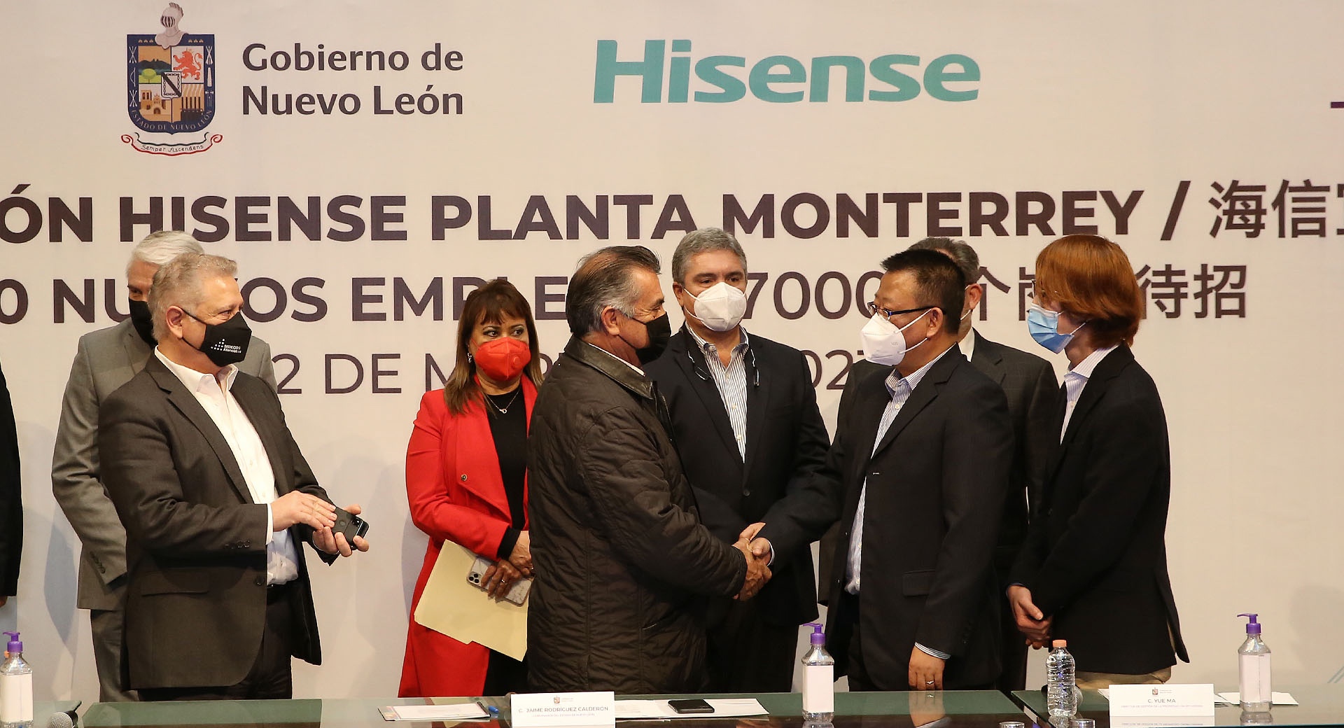 Hisense anunció hoy inversiones por 260 millones de dólares en Nuevo León, destinados a la construcción de una planta de manufactura de electrodomésticos que generará 7 mil empleos en los próximos 5 años.