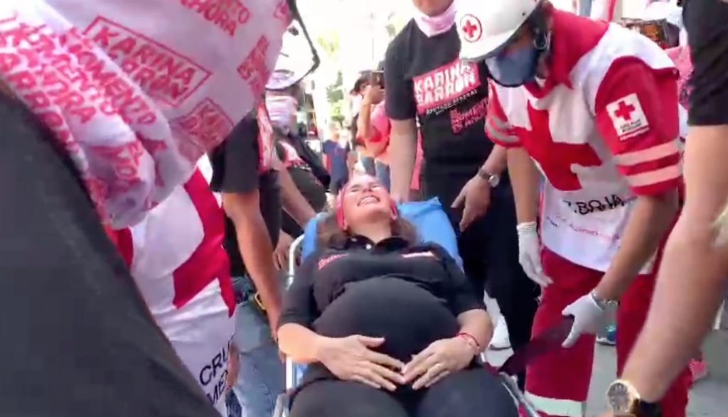 En un video que circuló en redes sociales se ve a Barrón con dolores de parto, recibiendo apoyo de las mujeres priistas que la ayudan en su campaña, al tiempo que paramédicos la subieron a una camilla y se retiraron del lugar para ir al hospital más cercano.