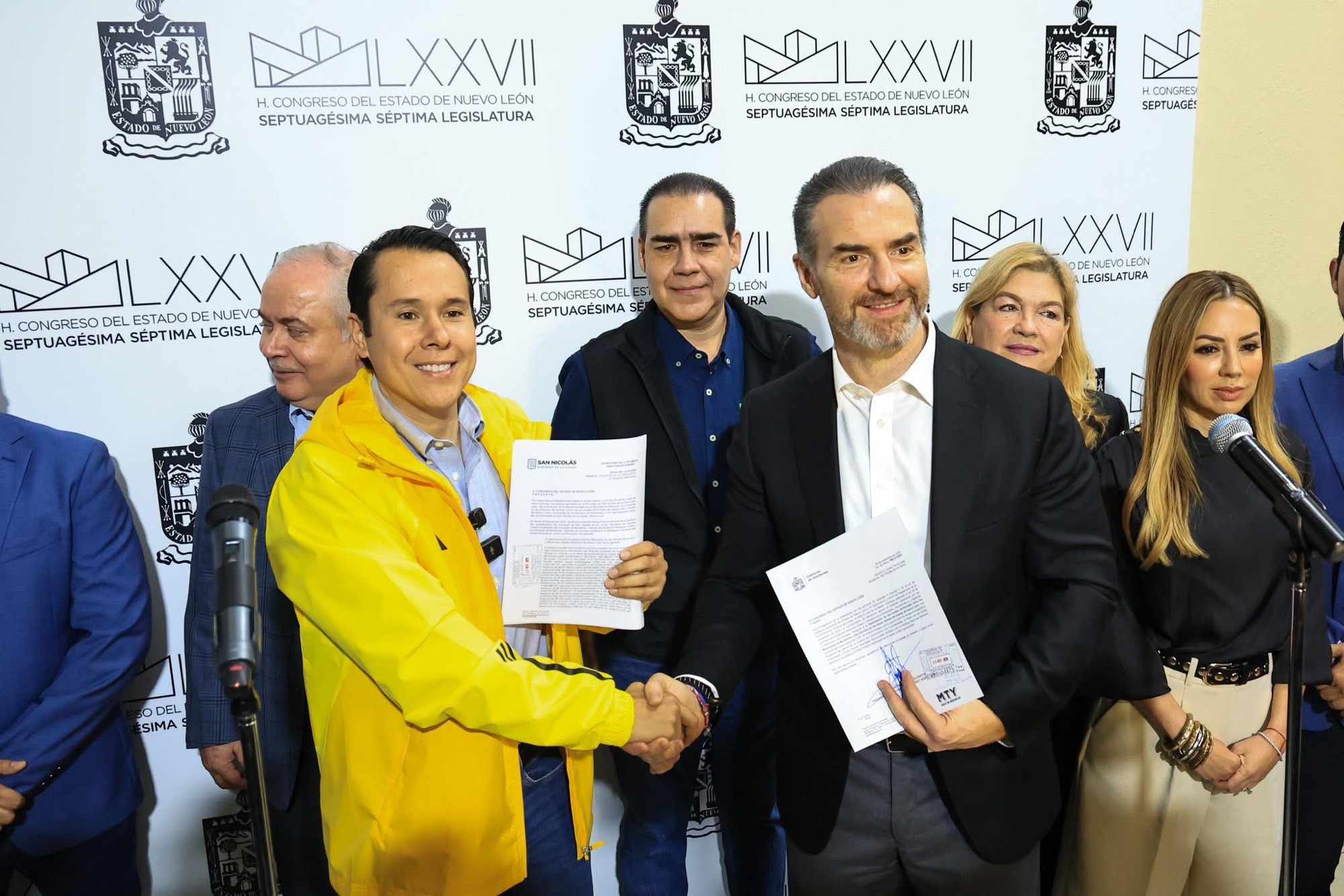 Monterrey, N.L.— En un hecho considerado histórico para la zona metropolitana, los alcaldes de Monterrey y San Nicolás de los Garza, Adrián de la Garza y Danel Carrillo, respectivamente, presentaron este martes ante el Congreso del Estado el acuerdo aprobado por ambos Cabildos para actualizar los límites territoriales entre los dos municipios y abrir paso a la construcción del nuevo estadio de los Tigres.