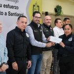 Ante los elementos reconocidos, el Alcalde señaló la importancia del trabajo de los elementos de seguridad y vialidad para que Santiago esté entre los municipios más seguros del área metropolitana.