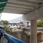 En una obra vial en construcción sobre el lecho del río Santa Catarina, en Nuevo León, se vinieron abajo dos estructuras de concreto, este martes, sin que se registraran personas lesionadas.