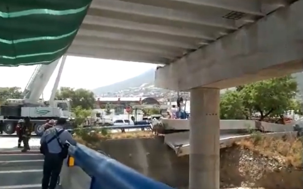 Las trabes se derrumbaron en el viaducto elevado en la Avenida Morones Prieto y Montaña, por lo que personal de Protección Civil municipal acudió al lugar para retirarlas.
